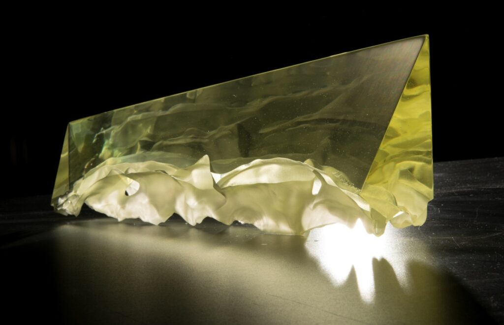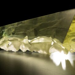 A parallel area of the artist’s creative work is in abstract glass sculptures. These often – as intended by the artist – reflect multiplied images of the real world, the perception of which depends on many factors. Factors such as the location and method of display as well as the play of light interact with the viewer’s own perception as they contemplate this real yet transformed world.