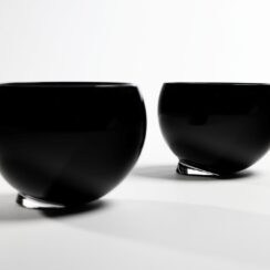 In the series „Pebbles” and „Stability,” the artist reinforces the effect of changing reflections through repeated forms, such as with ring-shaped recesses cut into solid glass. The multiplied, distorted reflections of fleeting moments of reality can also be seen in the twenty-one dark spheres of his piece „Black Eyes”.