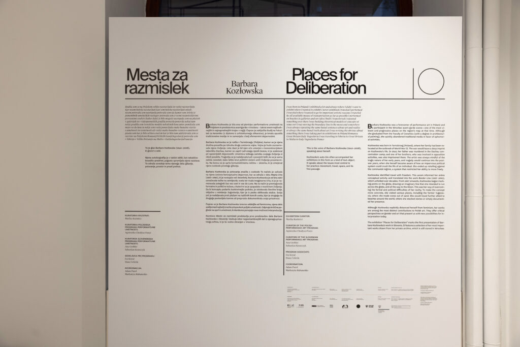 Wystawa „Places for Deliberation” Barbary Kozłowskiej jest pierwszą prezentacją tej artystki w Słowenii. Prezentowane są na niej wybrane najważniejsze prace artystki z jej prywatnego archiwum przechowywanego nadal we Wrocławiu.
